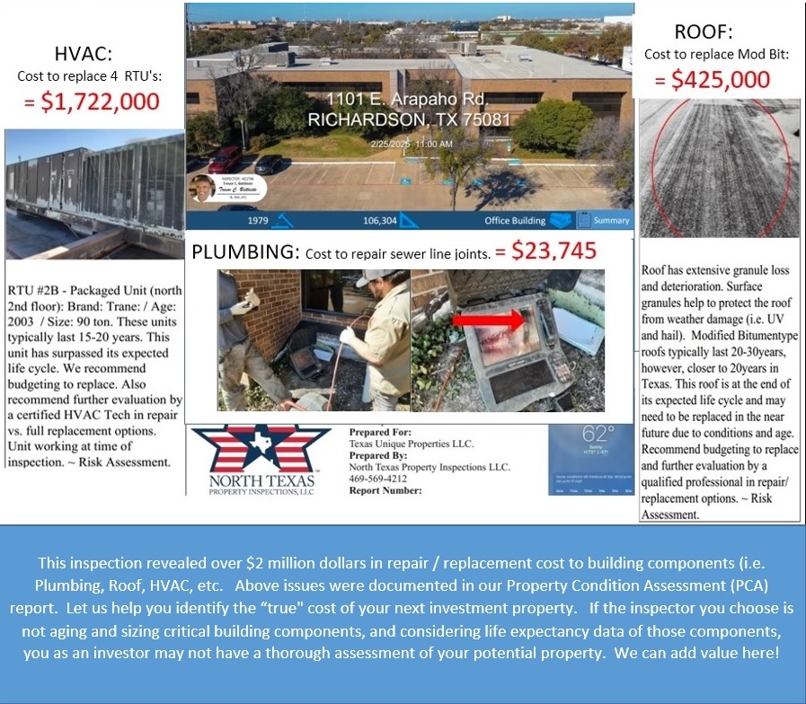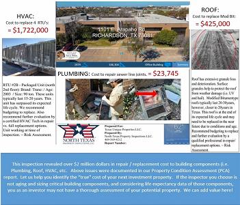 If you are planning to purchase, lease, or sell a commercial building anywhere in Dallas County, Collin County, or Tarrant County, you will need to undergo an inspection before moving forward. What many investors fail to realize is that the things that you don't initially see, often will be the most important details to be aware of. Don't leave these things up to chance; call us right away and we can perform a thorough inspection that will provide you with all the information needed to make a sound investment.